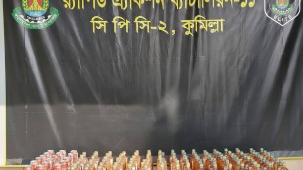 কুমিল্লায় র্যাবের পৃথক অভিযানে ১৭৪ বোতল বিদেশী মদ, ১৮ ক্যান বিয়ার ও ১৮ কেজি গাঁজা’সহ আটক-১