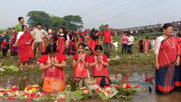 দীঘিনালায় ফুল অর্পণের মাধ্যমে শুরু বিঝু উৎসব।