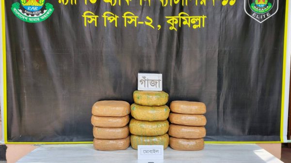 কুমিল্লায় র্যাবের অভিযানে ২৬ কেজি গাজা উদ্বার। এক নারীসহ আটক-২