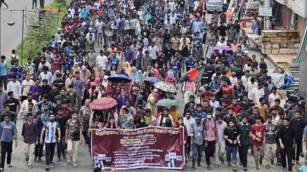 তিন দফা দাবিতে রুয়েটে বিক্ষোভ।