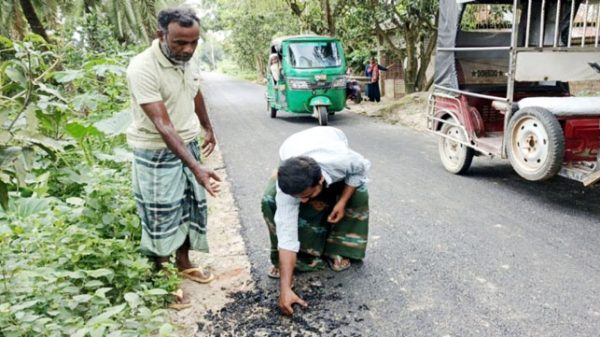 হাত দিলেই উঠে যাচ্ছে রাস্তার কার্পেটিং।