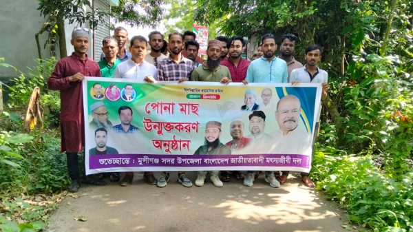 মুন্সীগঞ্জ জেলা ও শ্রীনগর উপজেলার যৌথ আয়োজনে আড়িয়াল বিলে মাছের পোনা অবমুক্ত করন ও আলোচনা সভা।