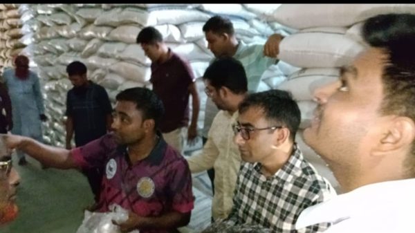 বাগমারার সরকারী খাদ্য গুদামে পচা চাল।