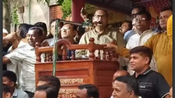 চুয়াডাঙ্গায় বিএনপি কর্মী সভায় শামসুজ্জামান দুদু ধানের শীষের বার্তা পৌঁছাতে নেতা কর্মীদের প্রতি আহ্বান।