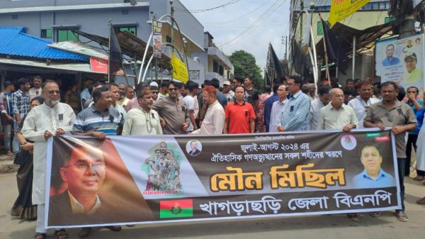 গণআন্দোলনের শহীদদের স্মরণে খাগড়াছড়িতে জেলা বিএনপির মৌন মিছিল।