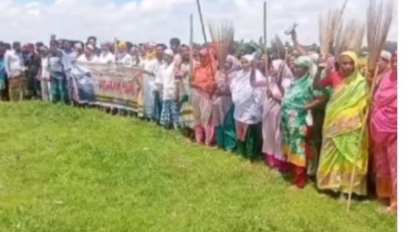 মেঘনার তীরে বালু খেকোদের বিরুদ্ধে মানববন্ধন ও বিক্ষোভ।