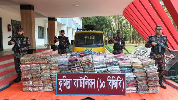 কুমিল্লা সীমান্তে ১০-বিজিবির অভিযানে ১ কোটি ৩৪ লাখ টাকার ভারতীয় পণ্য উদ্বার